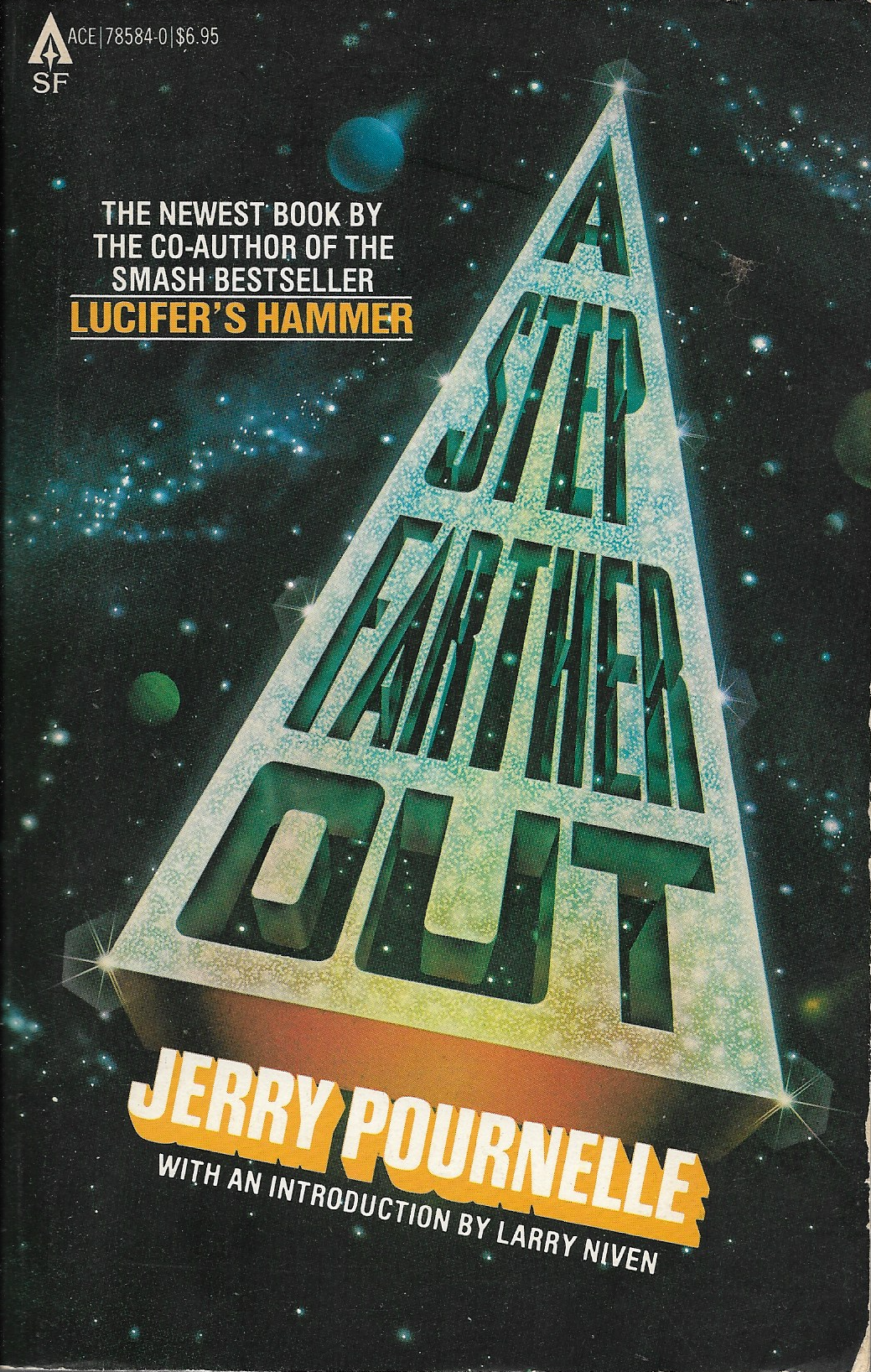 Pournelle, Jerry, editor. A Step Farther Out. Ace, 1979. First edition trade paperback original, a Fine- copy with edgewear and slight age-darkening to pages, inscribed by Pournelle: “To Brian & Becky —/Now Eternal —/Jerry Pournelle.” Collection of essays, a few of which are reprinted from That Buck Rogers Stuff from 1977 (which I also have a signed copy of). The very last book from the private collector sale, thrown in as a freebie. I needed to research whether there was a hardback edition; there was, but it came out later in the UK, so this is still the true first.